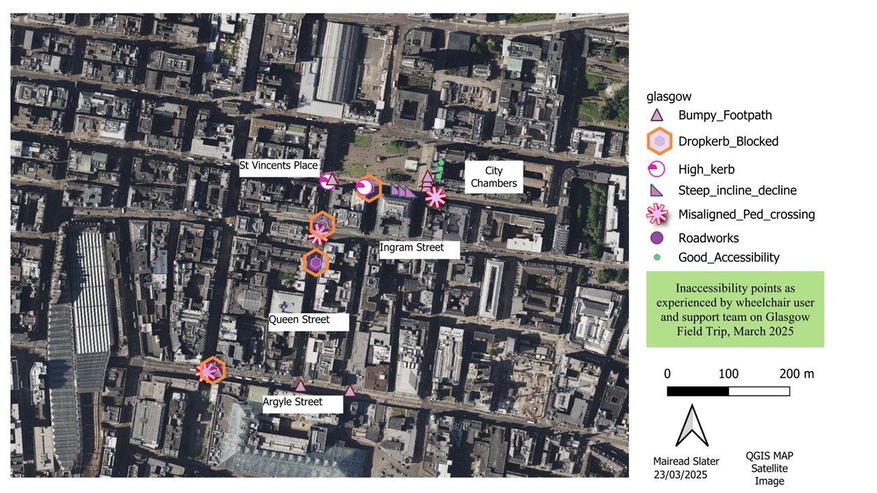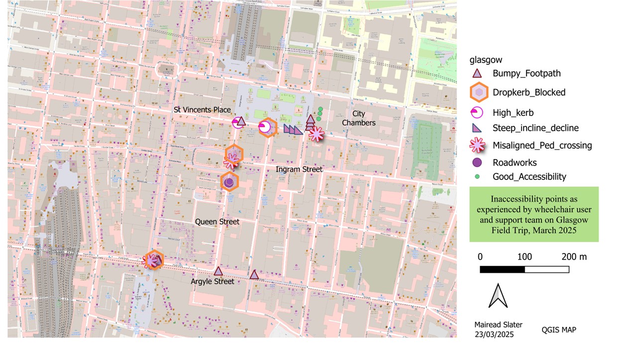 Explore where there were difficulties for a wheelchair user in Glasgow